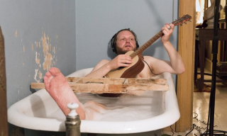 It was completely and compulsively mesmerising. The whole thing is set in the decaying splendour of the Astors' "Rokeby Farm" in New York state. Eight screens show individual musicians playing alone but together, in separate rooms connected to each other by head phones (just occasionally they go and visit each other). That's Kjartansson himself with the guitar in the bath...