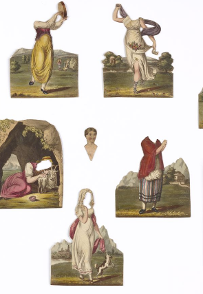 But in the same "toys and games" case, I also took a fancy to the kids' paper cut-outs, with interchangeable heads etc, of Little Henry, Little Fanny and Little Lauretta, all the rage around 1814.