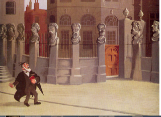 But there is a twist. For there is no reason whatsoever to suppose that these figures were originally sculpted as emperors at all. Whatever Christopher Wren, as the designer, and his sculptors had in mind in the seventeenth century (perhaps a group of miscellaneous worthies, more likely a line up of ancient boundary markers or ���herms���, which were made in roughly this form), it���s clear that these figures have only much more recently come to be called, and understood as, Roman emperors. In fact, so far as I have been able to discover, Beerbohm���s novel in 1911 is the very first time they get called emperors in print (if anyone knows of something earlier, do let me know).