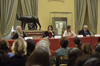 Yesterday I went to Rome for a one-off gig: to give a speech (lectio magistralis, as it was called appropriately in Latin) on the subject of violence against women. It was in an event held in, and partly organised by, the Camera dei Deputati, the Italian lower house whose Presidente is the excellent Laura Boldrini, sitting next to me in the picture above. It is partly thanks to her, and other women active in the Italian government, that there has been such a lot of public focus in Italy on violence against women. I'm not saying that public focus is the whole solution; but unlike the UK, Italy has ratified the Istanbul Convention (on preventing violence against women) and the event at which I was speaking was the second annual convegno on the subject organised by the Camera dei Deputati and the Council of Europe.