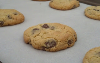 Day 2 of my baking craze was spent making more bread and one of my all-time favorite guilty pleasures--chocolate chip cookies. Yum! I'm really particular about my chocolate chip cookies. They have to be a little crispy on the outside and chewy on the inside. We have a local bakery/restaurant that makes the BEST chocolate chip cookies ever and--lucky for me--she shared her recipe for these delicious treats on her blog. Here's the recipe: