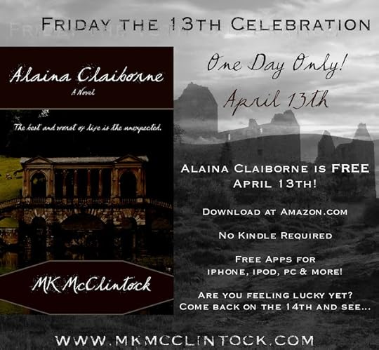 MK McClintock is celebrating this Friday the 13th by offering Alaina Claiborne for free! Are you feeling lucky? Get your copy today!