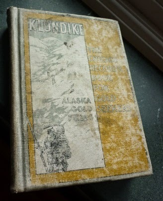 …selling cheaply because its cover is ‘worn and scuffed’ to such an extent that you can hardly read that it is The Chicago Record’s Guide For Gold Seekers, published in 1897. Inside are pristine pages, some clearly not even opened before. There are maps, there are boat routes and prices, there are instructions on how to extract gold, and there are long lists of all the equipment and food and clothing that you should take with you into that wild place, just short of the Arctic, where, of course, supplies are cut off for the long frozen dark winter months. That book must surely have gone to the Klondike in somebody’s ‘outfit’! I was handling a book that had lived the adventure of the Gold Rush! Gosh, I do love research!