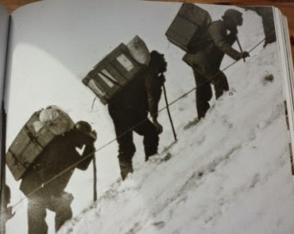 I had a wonderful time researching. There are photographs showing men and women dressed in adventuring outfits, posed in studios before they set off, and then hollow-eyed and desperate on trails lined with dead horses and hit with avalanches. I also found this book: