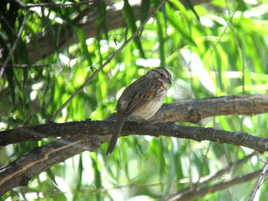 Song Sparrow avoiding the bright sun. Nogales, AZ. 30 Apr 2011. Photo copyright David Sibley.