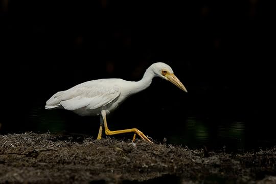 Question 1What is the species of this all-white heron?Yellow-crowned Night HeronCattle EgretHint: Nope, bill is too thick, eye too big, and Cattle Egret should have black legsLittle Blue Heron (immature)Hint: No, bill is a little too thick, and Little Blue should have greenish-gray legs and bill, not yellow.Great EgretHint: Sorry, Great Egret would be much more slender, and have black legs.Great Blue (Great White) HeronHint: No, "Great White" Heron would be much more slender, and have drabber grayish legs and billSnowy Egret Hint: Nope, Snowy Egret is more slender and has black or greenish legs, dark billQuestion 1 Explanation:It's an albino Yellow-crowned Night Heron, identified by size and shape. The lack of melanin has left the bill and legs bright yellow, instead of the usual dark gray, but the eye color is not affected. The thick bill, large orange eye, moderately long and thick neck, and other clues all fit Yellow-crowned and no other heron.