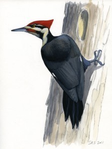 Pileated Woodpecker. Original gouache painting copyright David Sibley.