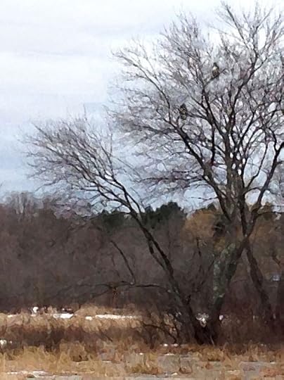 By the end of February, even in cold and snowy Massachusetts, Red-tailed Hawks are courting and forming pairs in preparation for nesting. It’s common to see the male and female of a pair sitting close to each other in a tree, and this provides a very powerful clue to identification.