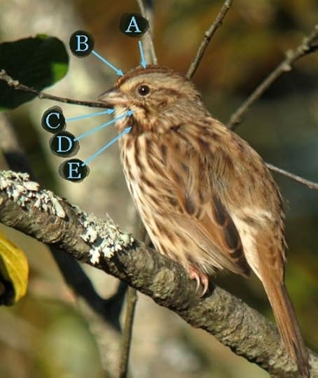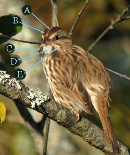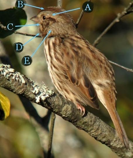 The three photos below show a Song Sparrow as it turns its head. Your challenge is to locate the plumage marking known as the lateral throat stripe in each photo.