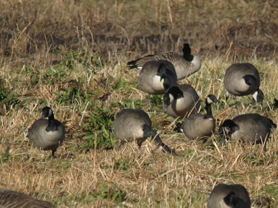 It’s a little easier to judge the size of birds that are swimming, since they are all on the same level. The best opportunity to judge size is when something alarms the geese and they are all in alert posture. Scan quickly then for smaller birds.