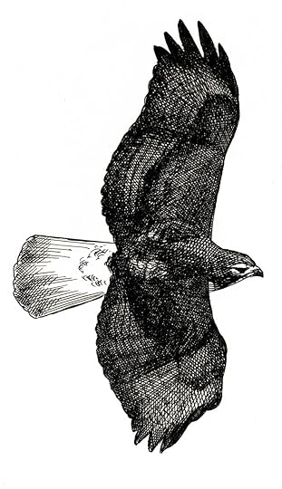 Gray Hawk, drawn for the revised edition of Hawks in Flight. The pale color of this species requires a lighter touch, with sparse fine lines, and in pen-and-ink there is little room for error. If you put on too much ink there is no way to take it back.