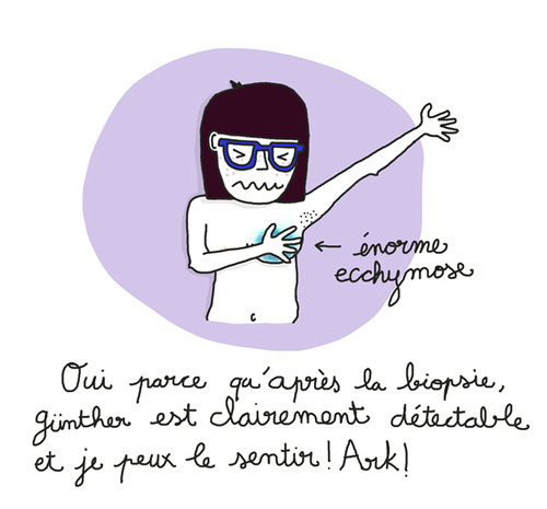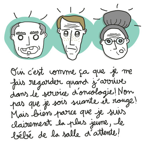 « J’ai été diagnostiquée d’un cancer du sein en février 2014, à 29 ans.Oui, c’est vrai, c’est jeune! Pis je me le fais rappeler à chaque fois que je vais en oncologie : je suis le bébé de la salle d’attente! Sachant qu’à chaque rendez-vous j’allais subir les mêmes regards curieux,