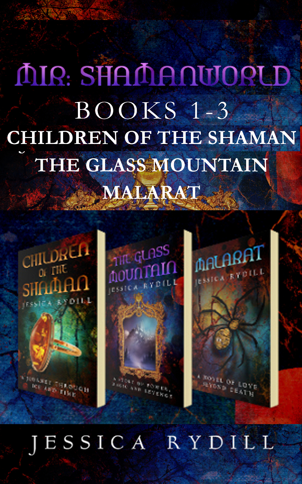 The original cover art was by Truenotdreams Design and I have re-used it for this volume.In a moment of rash enthusiasm, I have created a box-set version of the first three books of my Mir: shamanworld series for Kindle. You can pre-order it here.The set comprises Children of the Shaman (currently free to download), The Glass Mountain, and Malarat. It is available to pre-order from Amazon and will be available for regular purchase on July 17.As long as Children of the Shaman is free to download (basically until the end of September), the three-book bundle will be for sale at a special price of $6.97 US or £4.98 sterling. This is cheaper than buying the three books individually.In the mean time, I will be working hard to bring out the fourth book in the series, Winterbloom, which might actually be called Pomegranate Seed.Here's the blurb for the box-set. I'd call it a trilogy, but Winterbloom will make it a tetralogy.