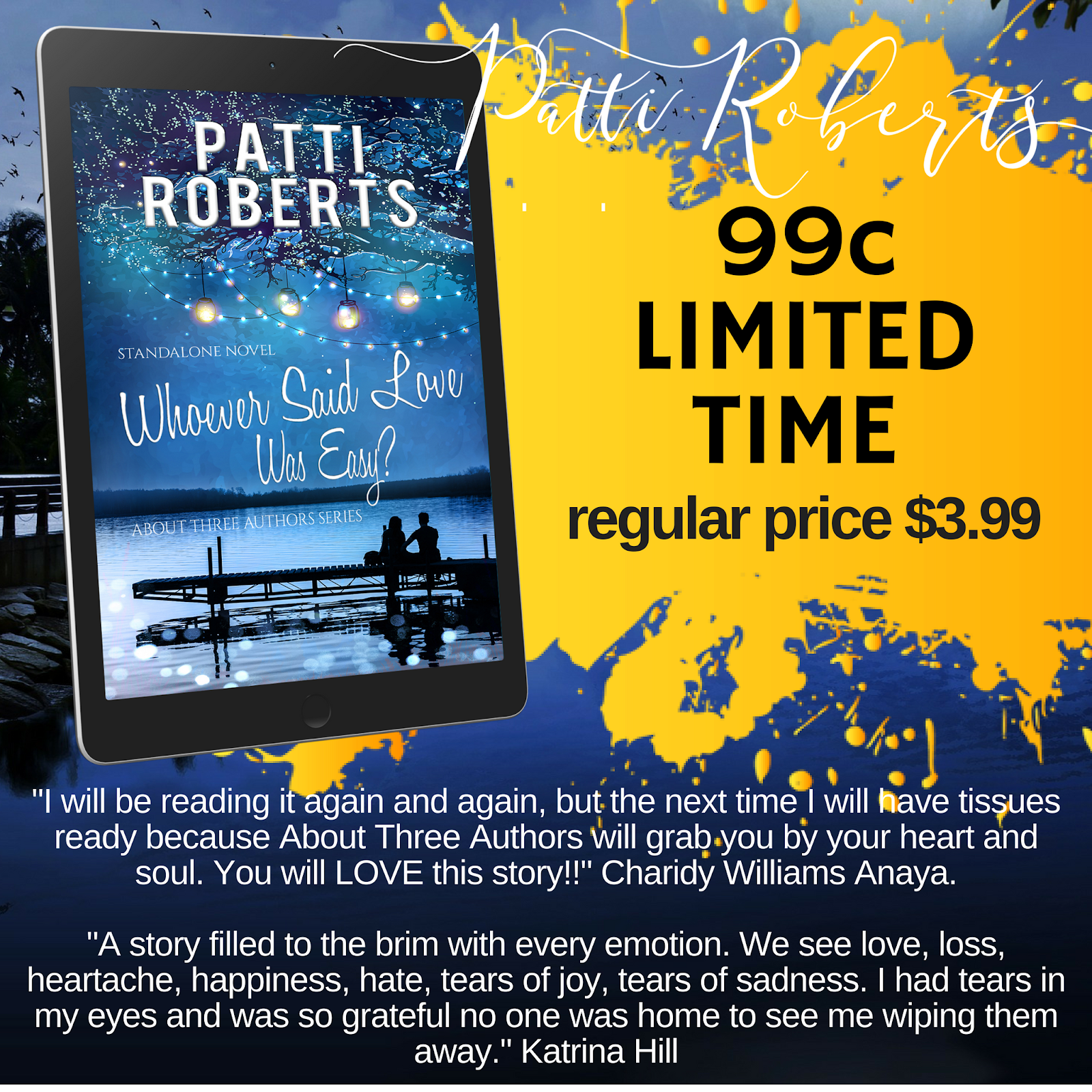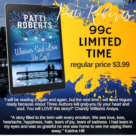 I absolutely love this author and this book did not disappoint me one bit...... just the opposite! I was completely taken in with Becky and her story! I read this in one sitting and could not stand it when I had to put it down! I was right there with Becky through her heartaches, confusion, sadness and happiness!! Do yourself a huge favor and pick up this book!!! YOU WILL NOT REGRET IT! Thank you so very much Patti!!! I look forward to more of your writing!!!! Keep up the great work!!! Also want to say thank you for so many of the personal touches of life you added to this story!!! I loved it soooo much! April Epley.------Patti has written ABOUT THREE AUTHORS - its a story filled to the brim with every emotion one could feel. We see love, loss, heartache, happiness, hate, tears of joy, tears of sadness. I enjoyed this read very much so, I had tears in my eyes and was so grateful no one was home to see me wiping them away. At one stage my reading was blurred but I read on .. Wanting to find out what was going to happen... Katrina Hill