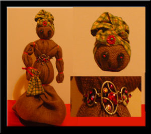I was inspired by Terra LunaWolf’s book My Fetch Poppets and Voodoo Dolls to create my own poppet, which I name, what else, but Morowa.
