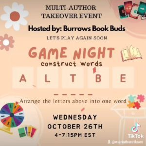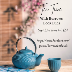 Friday, the 23rd I get the best of both worlds because I’ll be joining Burrows Book Buds Tea Time from 4-7. Join 13 authors as they chat without any “buy my book” agenda. I will be sharing at 4:30, but my plan is to be there for the duration, because I love reading and sharing comments.