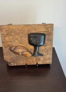 The carving is special to me as it is the artist’s rendition of a loaf of bread and a chalice, an important element in Christianity—communion or the Lord’s Supper.