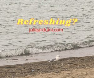 Observing the lifeguard, nothing about the task looked fun. When he emerged, he had to swim hard to return to his original spot. The waters and wind were not in his favor. When he stood, he looked, as the saying goes, like a drowned rat. There was nothing refreshing about the scenario.