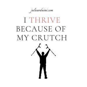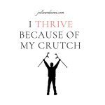 Anyway, as I use social media to connect with readers and people from my “real life,” I notice those that are not Christ followers who call those that are, religious. They will even approach me and say, “I know you’re religious so…” Thing is, that’s not true. At least not for me. And as new people have come my way since I’ve started blogging, I thought I would talk about the crutch I lean on. Here’s what most don’t realize: that crutch helps me THRIVE.
