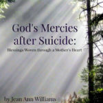 Bio: Jean Ann Williams is a member of American Christian Fiction Writers. She writes regularly for Putting on the New blog and Book Fun Magazine on the topic of child suicide loss. Her book “God’s Mercies after Suicide: Blessings Woven through a Mother’s Heart” started out as a blogged book on her Love Truth site. Jean Ann and her husband of forty-seven years have thirteen grandchildren from their two remaining children. They reside on one acre in Southern Oregon where they raise a garden, fruit orchard, goats, and chickens. Jean Ann’s favorite hobbies are practicing archery, hiking through the woods, and big game hunting with her bow.