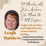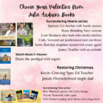 Two were associated with my own 54 Minutes with Julie Arduini birthday celebration. That was so much fun. Nine other authors joined me, and there ended up being over ten giveaways. It was so much fun I plan on doing this again later in the year when I celebrate my 10th anniversary as a published author. You don’t want to miss that, so you’re invited to join my Reader Group Page.
