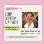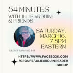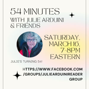 On Saturday, March 16, from 7-8 PM Eastern, I’m trying something different. Ten authors will join me for 54 minutes on my reader page. We each have five minutes to share.