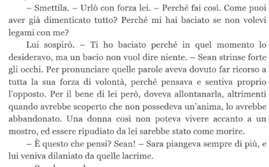 Questa è la storia di Sara e Sean, lei una ragazza italiana, semplice, dolce e determinata, lui, beh lui è Sean, personaggio davvero meglio riuscito di questo romanzo particolare. Chi è Sean?