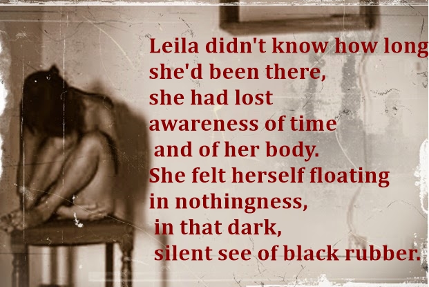 .....Leila didn't know how long she'd been there, she had lost awareness of time and of her body. She felt herself floating in nothingness, in that dark, silent see of black rubber.They opened the door and she was blinded by the light from the hallway. They said something and it seemed strange to her to hear a human voice. She thanked God, realizing that she hadn't lost her hearing. It must have been another torture method used in that house of madness. She felt a strange sense of pleasure from human touch, even if it was with her jailers. She would have wanted to hug the guard, but she no longer had the strength to move. They literally dragged her to the interrogation room. Again the man with the mustache; always him. She was starting to crave the conversation.......