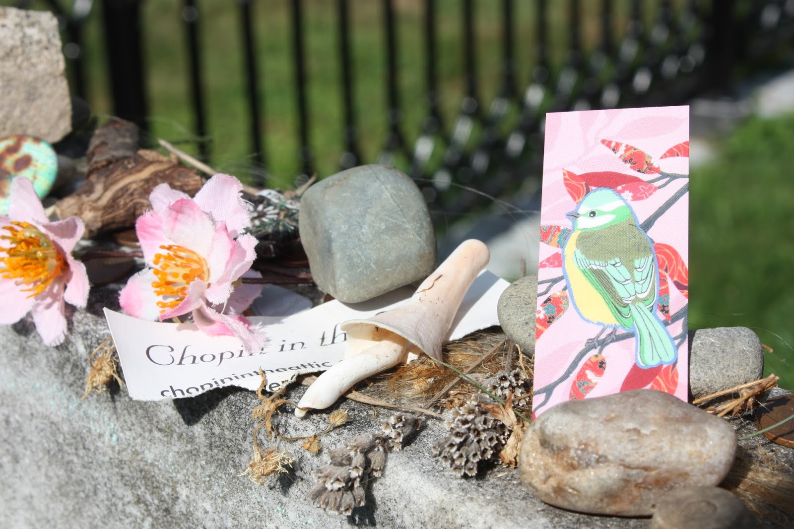 Items atop Emily's grave, West Cemetery