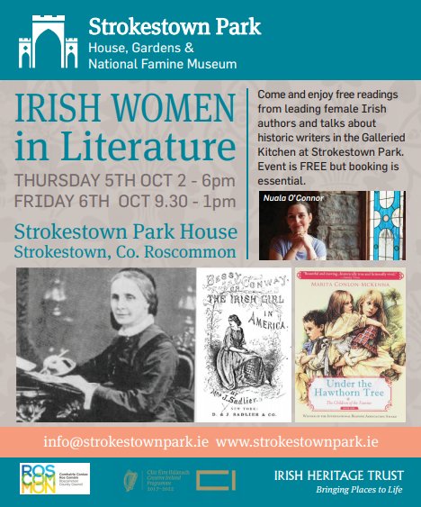 I'm reading at this free 2 day Irish Women in Literature event at Strokestown Park, Thursday 5th October. All welcome!