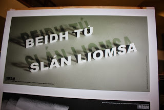 In collaboration with IMRAM, Dublin Institute of Technology lecturers Clare Bell and Brenda Dermody have curated a second special exhibition of Irish language literature texts imaginatively rendered by DIT design students. Poetry selected for the exhibition includes work by Gabriel Rosenstock, Liam Ó Muirthile, Nuala Ní Chonchuir, Ceaití Ní Bheildiúin, Philip Cummings and Ailbhe Ní Ghearbhuigh. IMRAM has booked 30 city centre poster sites to display the best of the students’ work, ensuring that Irish language literature will have a presence in Dublin city centre during the festival.