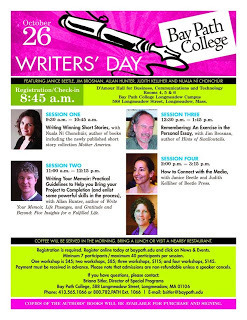 And with that I am off to Massachusetts for a short stint at Bay Path College to take part in their Writers' Day, give a reading and visit some classes. I will also be doing final research for my American novel.