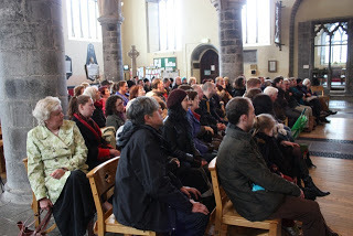 Actor reading Julian Gough's story in St Nicholas'sI started my Cúirt at Vincent Woods interview with Edna O'Brien. It was too dark in the Town Hall theatre to take notes but the interview will actually be broadcast on RTÉ Radio 1 on Arts Tonight tomorrow the 29th April, at 10pm. Vincent is a good, warm interviewer and Edna is a very fluent speaker; she spoke about her life and particularly the influence of her homeplace and family in Co. Clare on her writing. She was charming, regal, witty.I am writing an essay on her at the moment for a plenary I am giving at the AEDEI conference in Spain next month, so I have been immersed in Edna interviews lately online etc. I didn't learn anything new on Thursday night but it is always a pleasure to listen to her. Did somebody once say that if we didn't have Edna O'Brien we would have to invent her? She is our grand dame of letters, for sure.