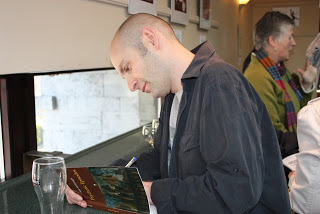 Alan McMonagle signing Psychotic EpisodesMidday on Saturday saw my fellow member of The Peers, Alan McMonagle's, launch. Psychotic Episodes is his second short story collection and it comes from the inimitable Arlen House. Pat McMahon did the launch speech and also being launched was Aideen Henry's newest book, Hugging Thistles.