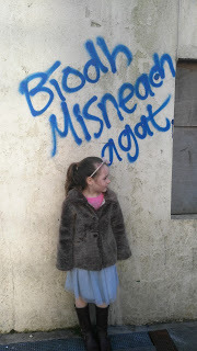 Juno with Prospect Hill graffiti - Irish for 'Take courage'