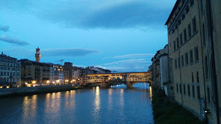 Ponte Vecchio at duskI was met off the airport bus from Pisa by Mundy Walsh, an Irish writer, and admin of St Mark's, who organised the event. She brought me to the lovely apartment above the church that I was to share with another panelist for the weekend.