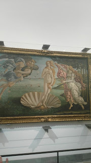 Botticelli's Birth of VenusI had all day Friday to myself before Saturday's day-long event, so of course I was out and about first thing. I went to the Uffizi Gallery to see the Botticellis (in my novel Miss Emily, Emily Dickinson compares her beloved sis-in-law Susan to Venus on her scallop).