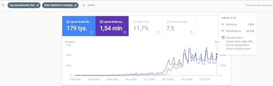 Aktualny wykres wyświetleń i kliknięć z Google Search Console: