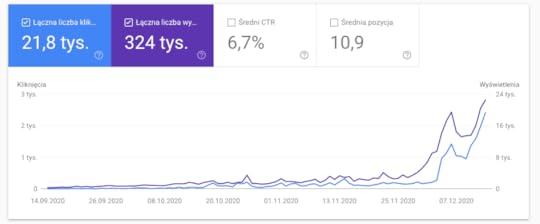 Wykres wyświetleń i kliknięć z Google Search Console: