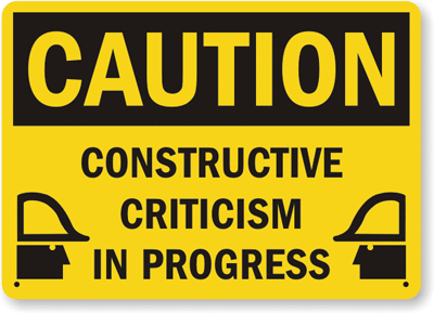 Criticism... is such a dirty word. Or is it honesty? Billy Joel? Where's my glasses?Constructive Criticism is something all writers ask for, receive, then bitch about when they get it. HA! You know it's true. (I'm just kidding around, relax.)