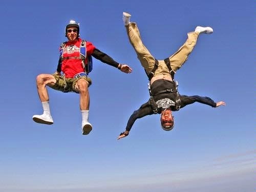 You piggy-back a professional skydiver while plummeting toward the Earth at roughly 170 mph.