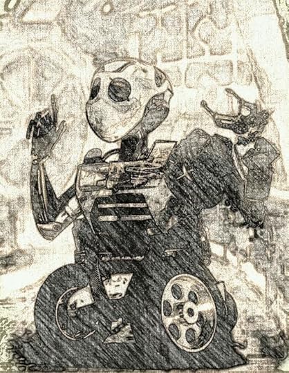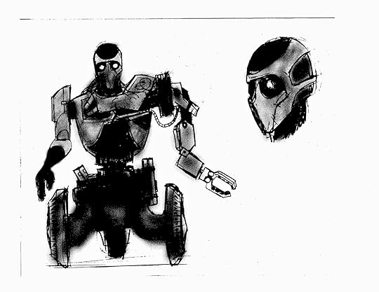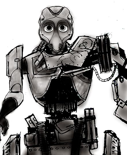Today, I'm going to share with you the early sketches of one of my favorite characters in the book, Rusty the Robot!