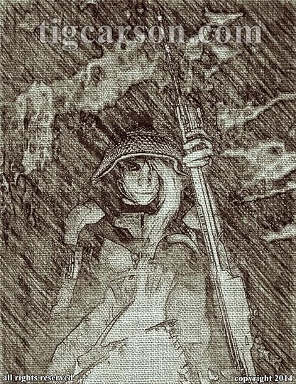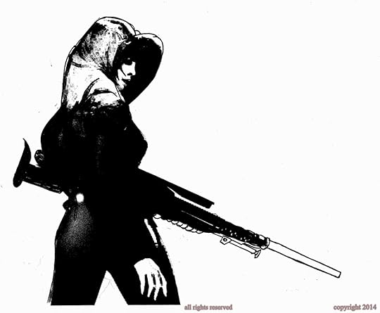 I sent Adam the sketch John had done. I also met up with Adam to go over her back story, and any ideas I had for her personal look. My original intentions for the art in the book was muted. I was reluctant about forcing an image of the characters into the readers mind. Adam took that into consideration...
