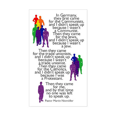 But, at the same time, I don't see the point in constant outrage and confrontation. Choose your battles, as they say. Save your strongest voice for things you feel the strongest about. Otherwise you're just angry all the time, and all the yelling will leave you raw. I don't want confrontation just for confrontation's sake, but there are moments when I will feel myself a coward if I don't speak.