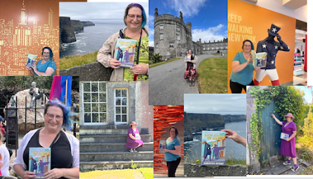 I won't try to recount my journey for you here, though I'd be thrilled to talk Ireland with anyone anytime! In the meantime, I'll leave you with this collage of me and my first novel posing our way across the Irish landscape (and a couple in JFK airport).