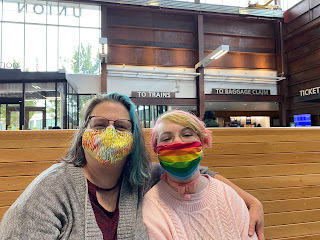 So, it's REALLT nice to be traveling again, even if I have to keep a mask on the whole time. Traveling by train is enjoyable (so far…ask again in 6 hours). I have a table and wifi, and it's okay that I didn't pack all that compactly because there's a little room to sprawl.