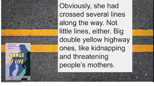 I was chugging along on a Gothic romance and loving it, when it hit me that I only had six months left to write the fourth Menopausal Superhero novel and I'd better get that puppy going. I'm grateful that I have a publisher waiting for my work, and accept that having that comfortable situation comes with costs, such as deadlines. But it wasn't easy to switch gears.