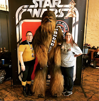 My sister, me, and a Wookie at Conapalooza 2019. Guess which is which!So, Friday, 17 April, I would have gotten up early, excited, happy, and a little sleepy. It's a 5.5 hour drive according to google maps, and I like to get there by lunch time when I can. I would have been happy about taking a day off of school to focus on my writer life.