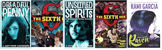 Interestingly, these also all came to me via family members. My sister lent me Dreadful Penny and Unsettled Spirits, having purchased it at a convention sometime last year where Matthew and I were both convention guests, as well as sharing Raven . My husband suggested The Sixth Gun series.