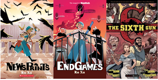 Newprints and Endgames by Ru Xu were passed my way by my thirteen-year-old daughter who loved them. She's a huge fan of Blue, the main character, and I can see why--she's so forthright, scrappy, and determined. Unfortunately, the storytelling disappointed me in that the narration pulled back from hard emotional moments, avoiding conflict that the story really needed.